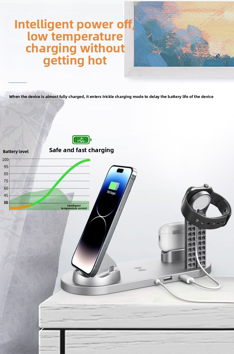 Versatile Charging: Simultaneously charges phone, watch, and headphones with 6-in-1 design